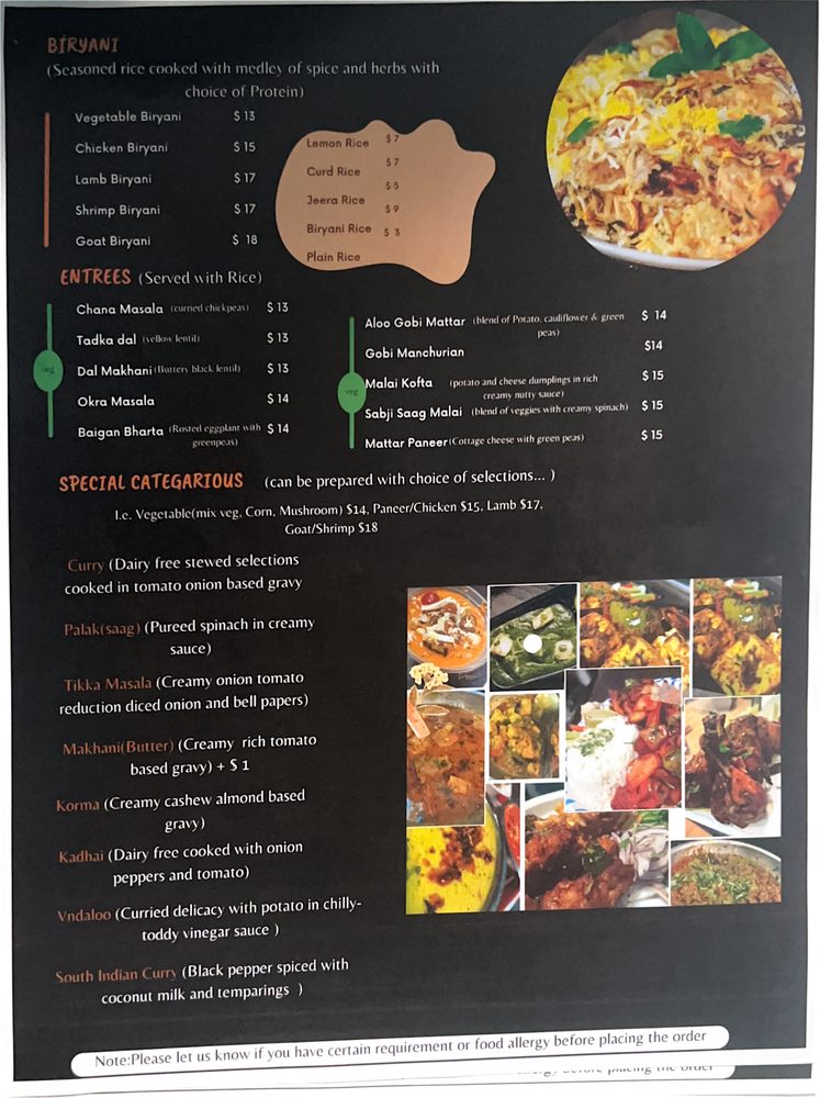 One of the highlights of Heera Indian Cuisine is its extensive menu, featuring a plethora of choices for every palate. Whether it be the tantalizing Chicken Saag or the hearty Goat Saag at around $20, you’re bound to find a dish that resonates with your taste. Vegetarian options like Paneer Saag and > Chanaa Saag showcase the restaurant's respect for diverse dietary preferences, all priced between $14 and $15.