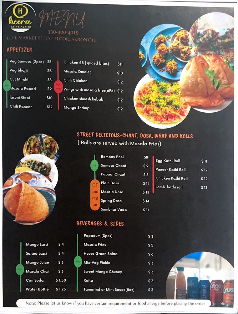 Welcome to Heera Indian Cuisine, a delightful gem nestled in the heart of Akron, Ohio, at 117 E Market St. Heera Indian Cuisine invites you to embark on an authentic journey of Indian flavors that are sure to leave you enchanted. With the convenience of delivery and takeout services, this restaurant is perfect for those who crave the rich spices and comforting dishes synonymous with Indian cuisine.